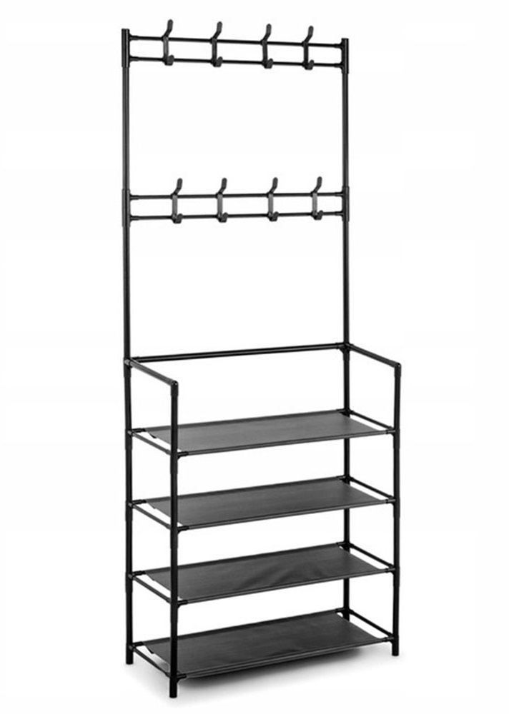 Com 4 prateleiras e 8 ganchos duplos, suporta até 20kg, e até 12 pares de sapatos, proporcionando muita versatilidade no seu uso.