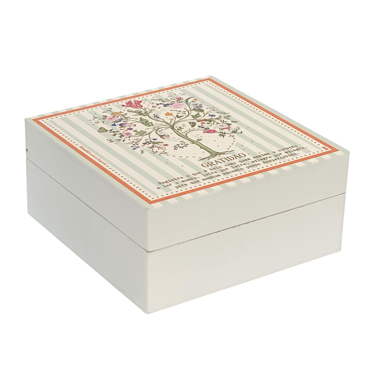 A Caixinha “Gratidão” em MDF é perfeita para quem deseja trazer mais leveza e significado ao dia a dia. Com design delicado e acabamento encantador, ela é ideal para guardar pequenos objetos, lembranças, acessórios ou bilhetes especiais.
