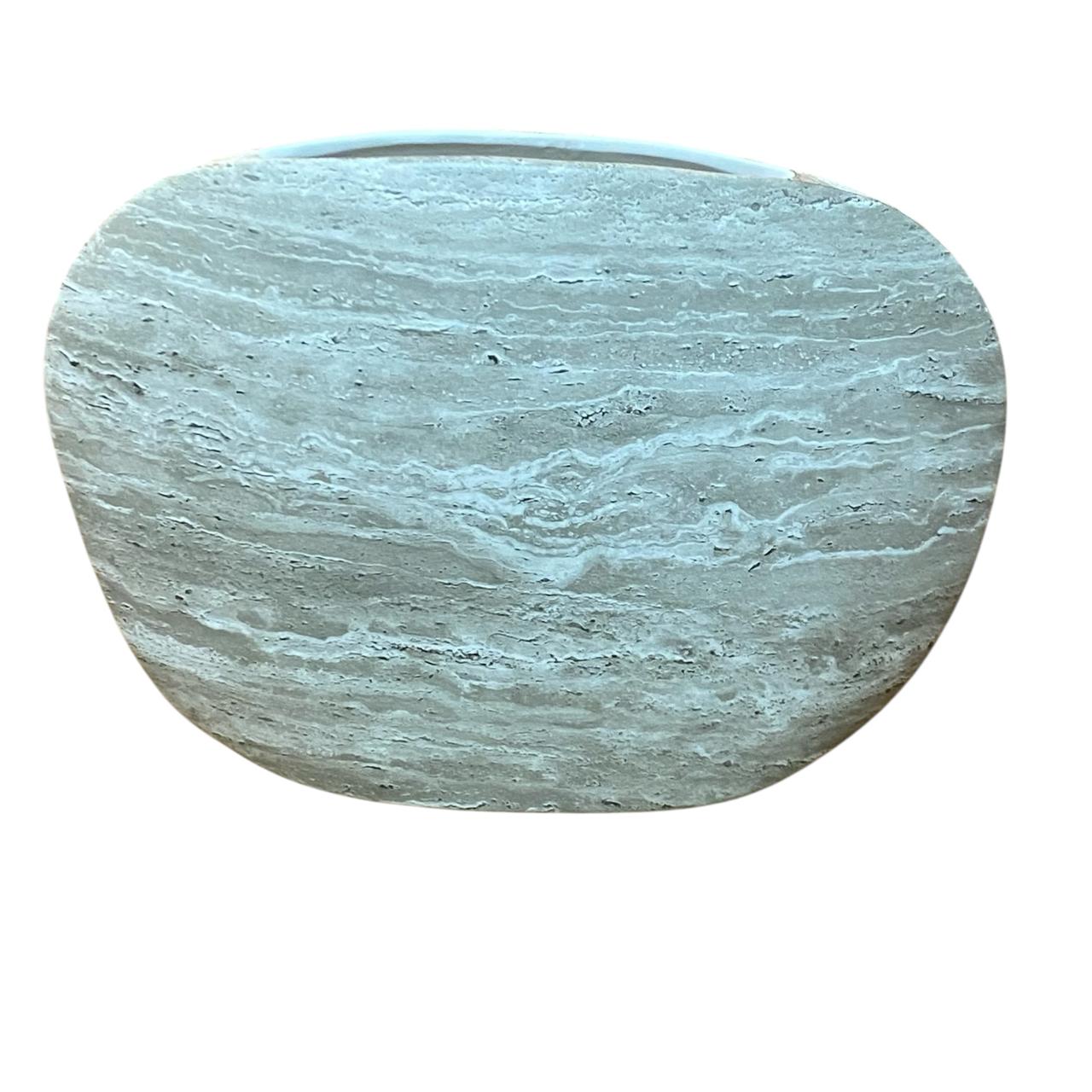 Seu design arredondado com linhas suaves proporciona charme e leveza, tornando-o ideal para ser utilizado tanto como peça de destaque em mesas e aparadores quanto como suporte para arranjos florais ou folhagens secas. Além disso, pode ser combinado com outros itens marmorizados para criar composições harmoniosas.