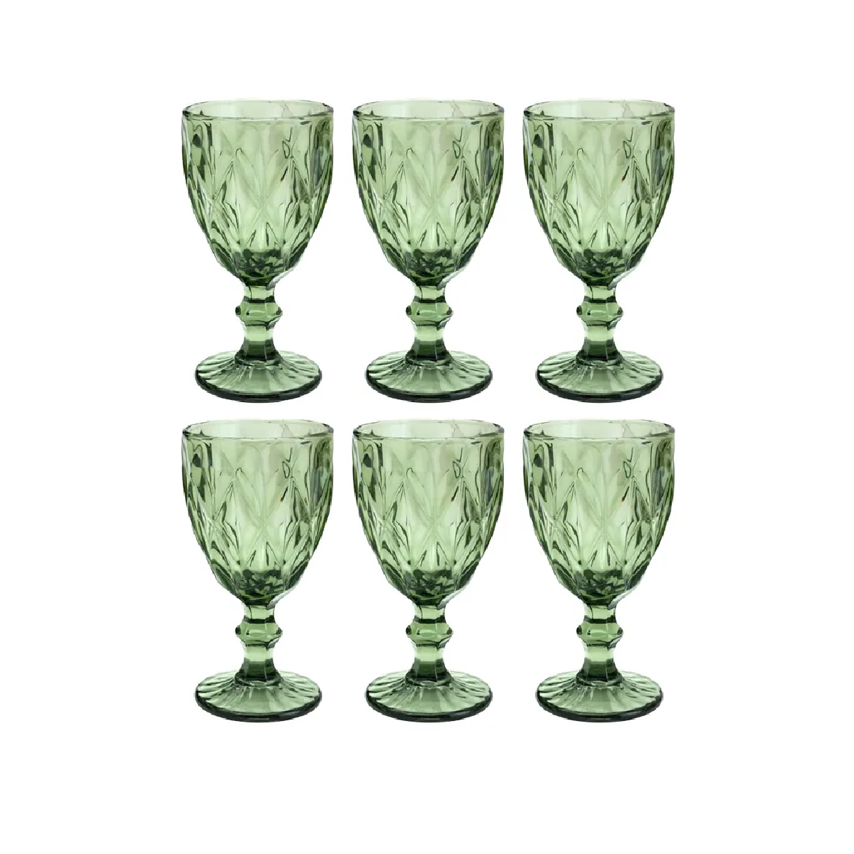 O conjunto de taças Diamond traz elegância e personalidade para a mesa. Produzidas em vidro de alta qualidade, possuem acabamento facetado no tom verde que cria um efeito visual sofisticado, valorizando a apresentação da bebida.