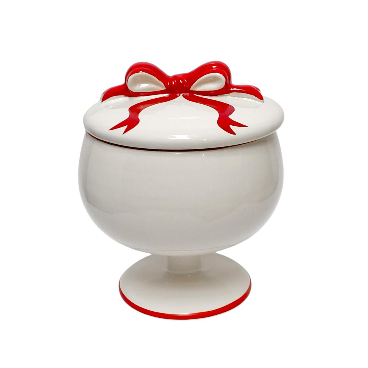Seu pé elevado confere destaque imediato à mesa, valorizando a apresentação de compotas, sobremesas, frutas, doces finos ou até mesmo como peça decorativa em aparadores e mesas de centro. A cor intensa e o laço delicado tornam a compoteira um item especial para ocasiões festivas, jantares temáticos e momentos de celebração.
