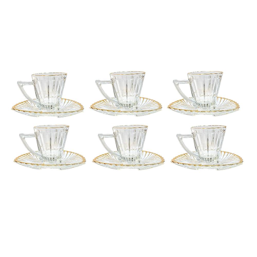 6 xícaras de café em vidro filetado dourado