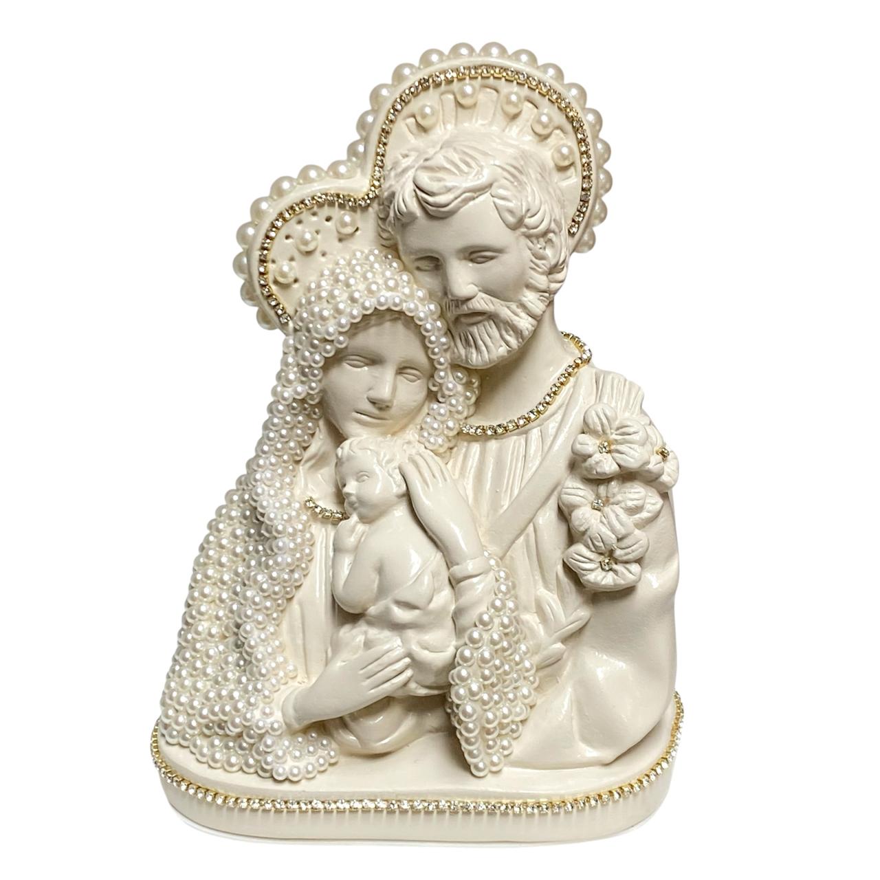 A Escultura Busto da Sagrada Familía branca com perola de renoir, é uma peça que transmite devoção, beleza e proteção. Com acabamento delicado e toque sofisticado, é perfeita para compor ambientes de fé e espiritualidade, seja em casas, capelas, salas de oração ou como presente religioso.