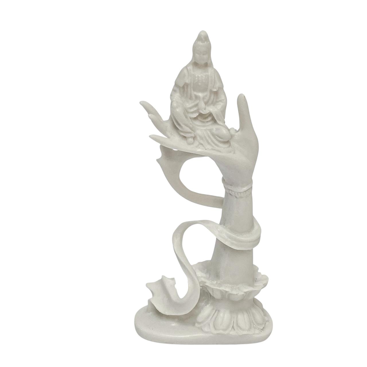 A Escultura Kuan Yin na Mao é uma peça delicada e repleta de significado, ideal para quem busca transmitir paz, compaixão e serenidade na decoração. Produzida em pó de mármore com acabamento branco suave, apresenta detalhes finos que valorizam a figura de Kuan Yin, a deusa da misericórdia e protetora dos lares.