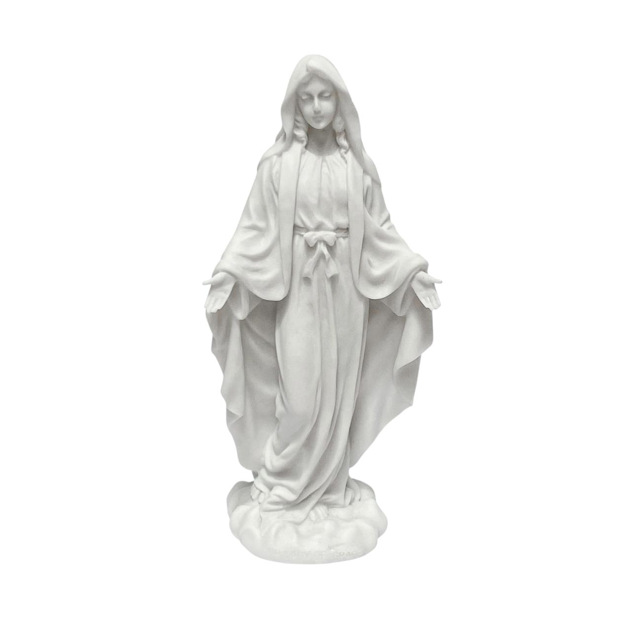 A Escultura Nossa Senhora da Graças é uma peça delicada, serena e carregada de significado espiritual. Produzida em pó de mármore com acabamento branco suave, apresenta traços finos e postura graciosa, transmitindo paz, proteção e acolhimento — características marcantes da devoção à Nossa Senhora da Graças.