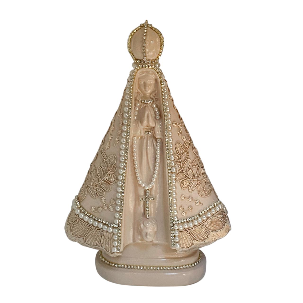 A escultura de Nossa Senhora Aparecida com renda trabalhada de café, é uma peça que transmite devoção, beleza e proteção. Com acabamento delicado e toque sofisticado, é perfeita para compor ambientes de fé e espiritualidade, seja em casas, capelas, salas de oração ou como presente religioso.