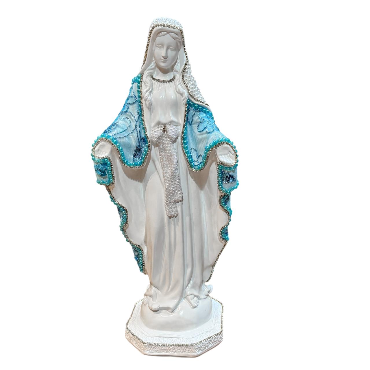 A Escultura Nossa Senhora Das Graças Branca com Renda em azul, é uma peça que transmite devoção, beleza e proteção. Com acabamento delicado e toque sofisticado, é perfeita para compor ambientes de fé e espiritualidade, seja em casas, capelas, salas de oração ou como presente religioso.