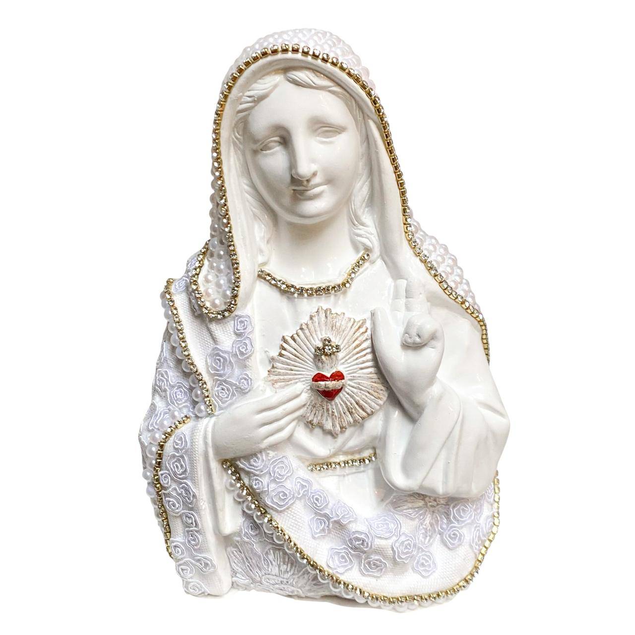 A Escultura de Coração de Maria, é uma peça que transmite devoção, beleza e proteção. Com acabamento delicado e toque sofisticado, é perfeita para compor ambientes de fé e espiritualidade, seja em casas, capelas, salas de oração ou como presente religioso.