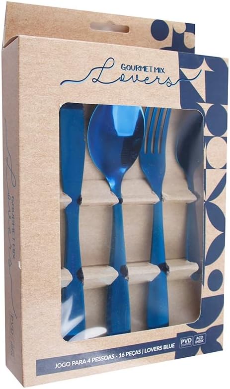 Acompanha: 4 Facas de Mesa, 4 Garfos de Mesa, 4 Colheres de Chá, 4 Colheres de Mesa