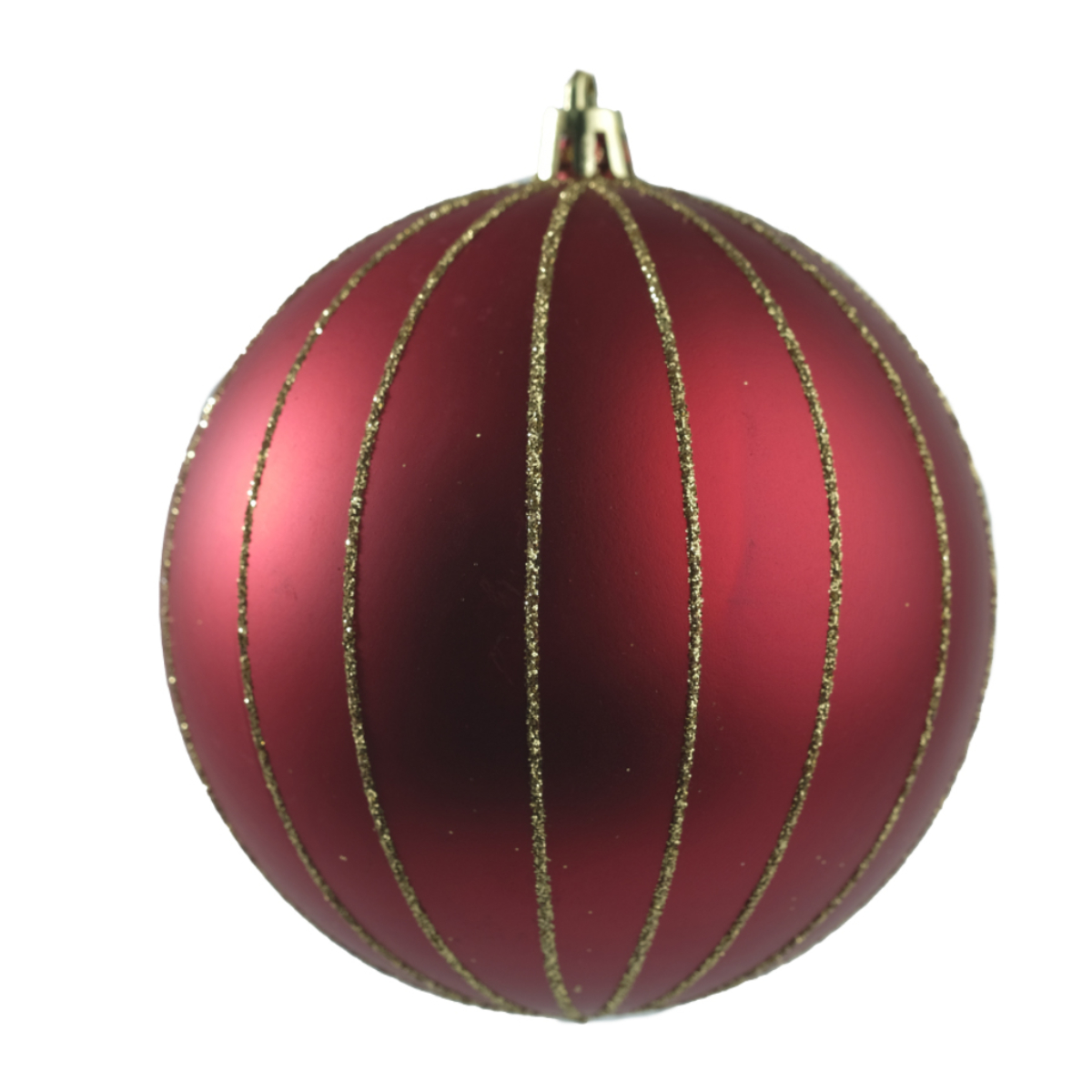JG 3 BOLA DECORADA NATALINA NO PVC VERMELHA 10CM