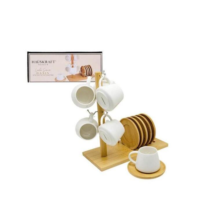 Torne seus momentos de café ainda mais especiais com o Jogo de Xícaras para Café com Pires e Suporte da linha Oasis – elegância, praticidade e modernidade em uma única peça!