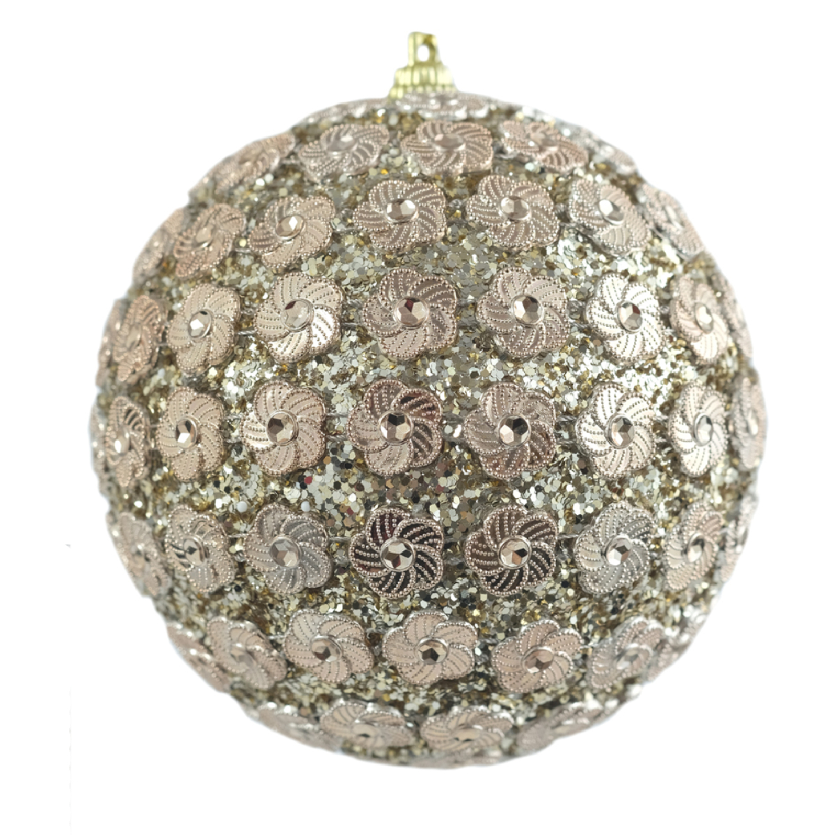 KIT 2 BOLA DECORADA NATALINA PVC NA COR CHAMPANHE 10CM