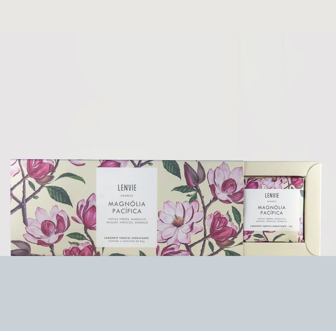 _x005F_x005F_x005F_x000D_Da casa para o corpo, o Kit Sabonete Vegetal Hidratante Magnólia Pacífica, reúne uma das best seller fragrâncias da Linha Arabesc em um kit com 3 unidades de 80gr. Proporcionando leveza, frescor e hidratação. 100% vegetal.