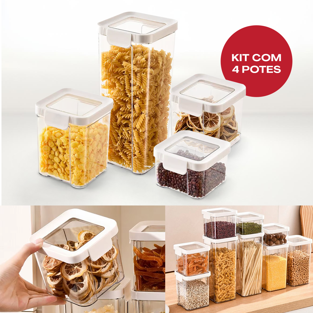 Produzidos em acrílico de alta qualidade, são resistentes, duráveis e livres de BPA, garantindo segurança no armazenamento. As tampas com trava e vedação em silicone evitam a entrada de ar e umidade, preservando o sabor e a textura dos alimentos por muito mais tempo.
