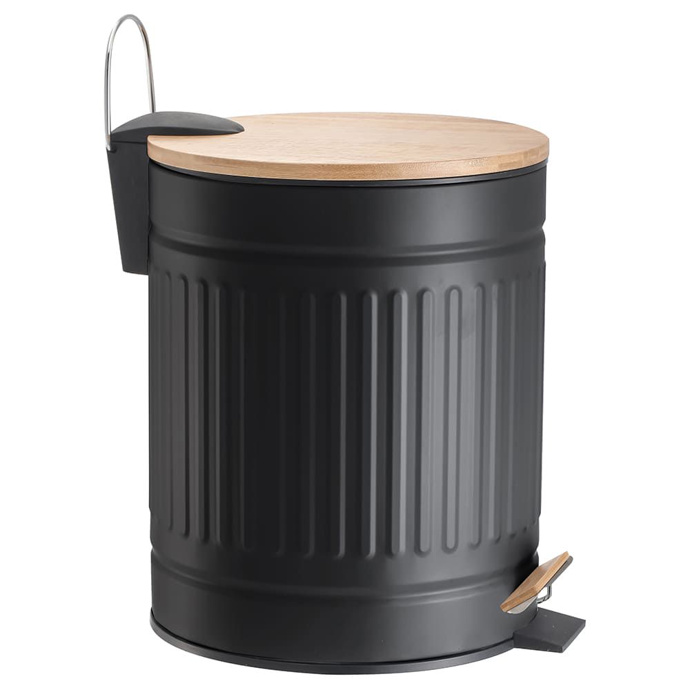 LIXEIRA 5L FLUTED PRETA C/PEDAL EM METAL E BAMBU MEK
