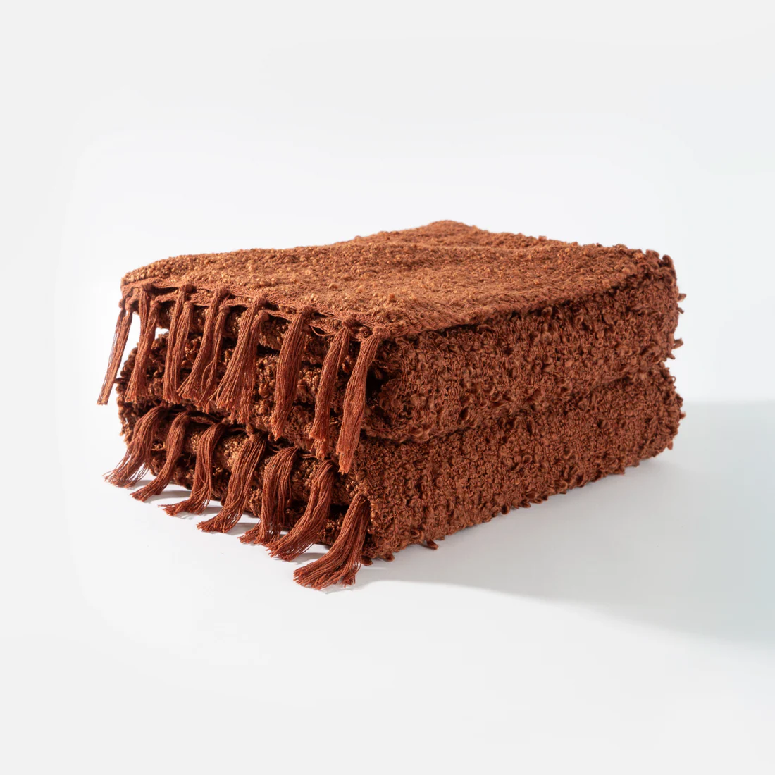 Envolva-se no aconchego sofisticado da nossa manta texturizada em bouclé duo. Combinando duas texturas exclusivas e um tom terracota quente e acolhedor, esta peça foi criada para transformar qualquer ambiente com charme, elegância e um toque contemporâneo. O acabamento macio e as franjas delicadas nas laterais elevam o design, trazendo um ar artesanal que valoriza a decoração.