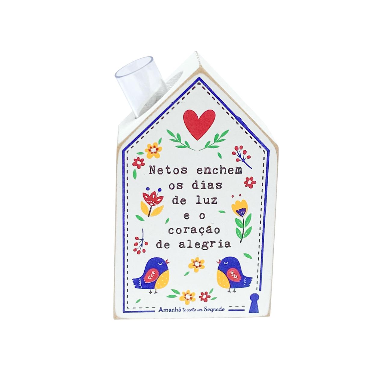 O Mini Vaso Casinha “Netos Alegria” é uma peça delicada e cheia de significado, perfeita para trazer charme e afeto à decoração. Feito em MDF branco de alta qualidade, possui formato de casinha, acabamento resistente e arte impressa com excelente definição.