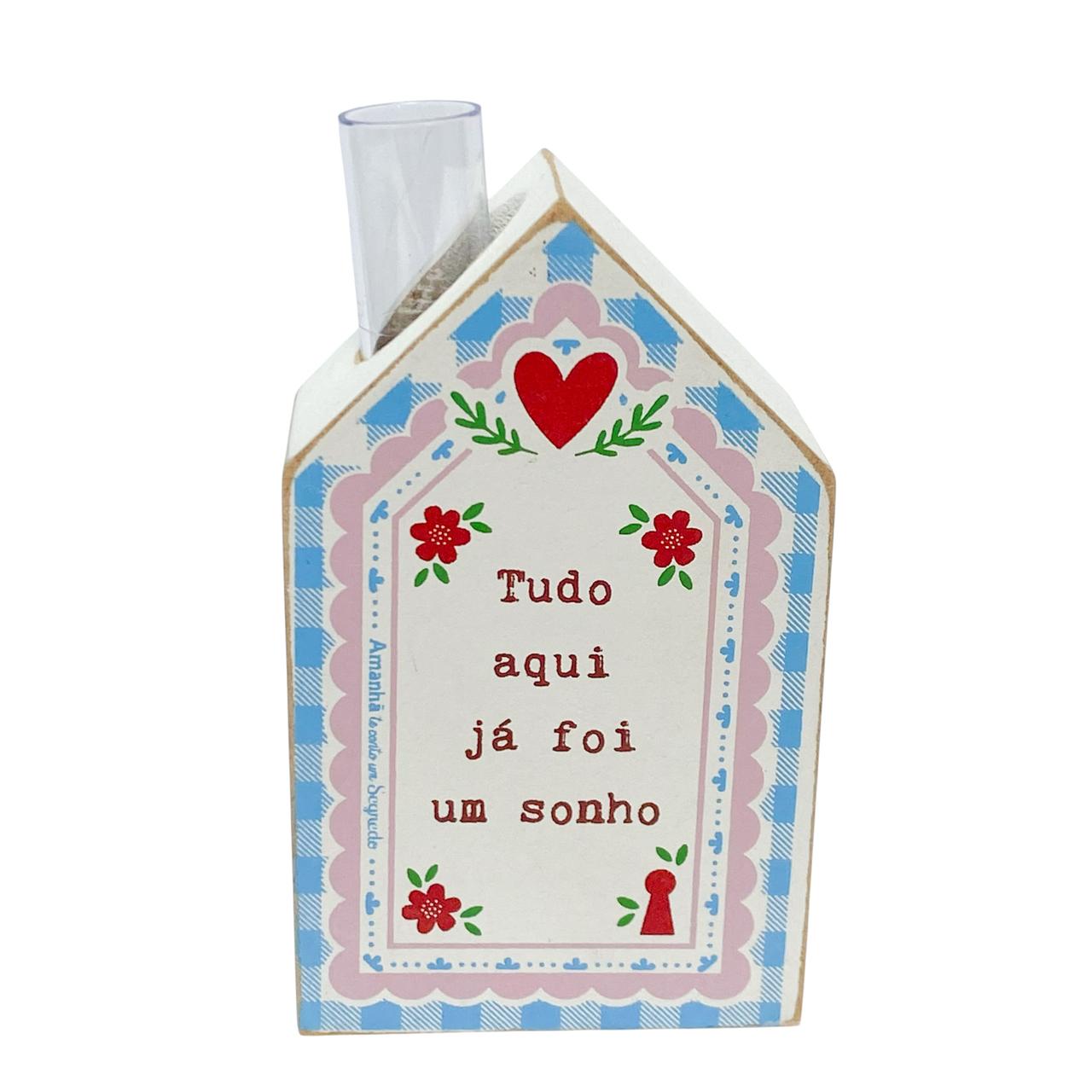 Com medidas 10x6x3 cm, é compacto, versátil e perfeito para compor mesas, nichos, escritórios, estantes ou ambientes especiais. A mensagem “Tudo Aqui É Sonho” traz leveza e um toque poético, ideal para quem deseja criar uma atmosfera mais acolhedora e cheia de significado.