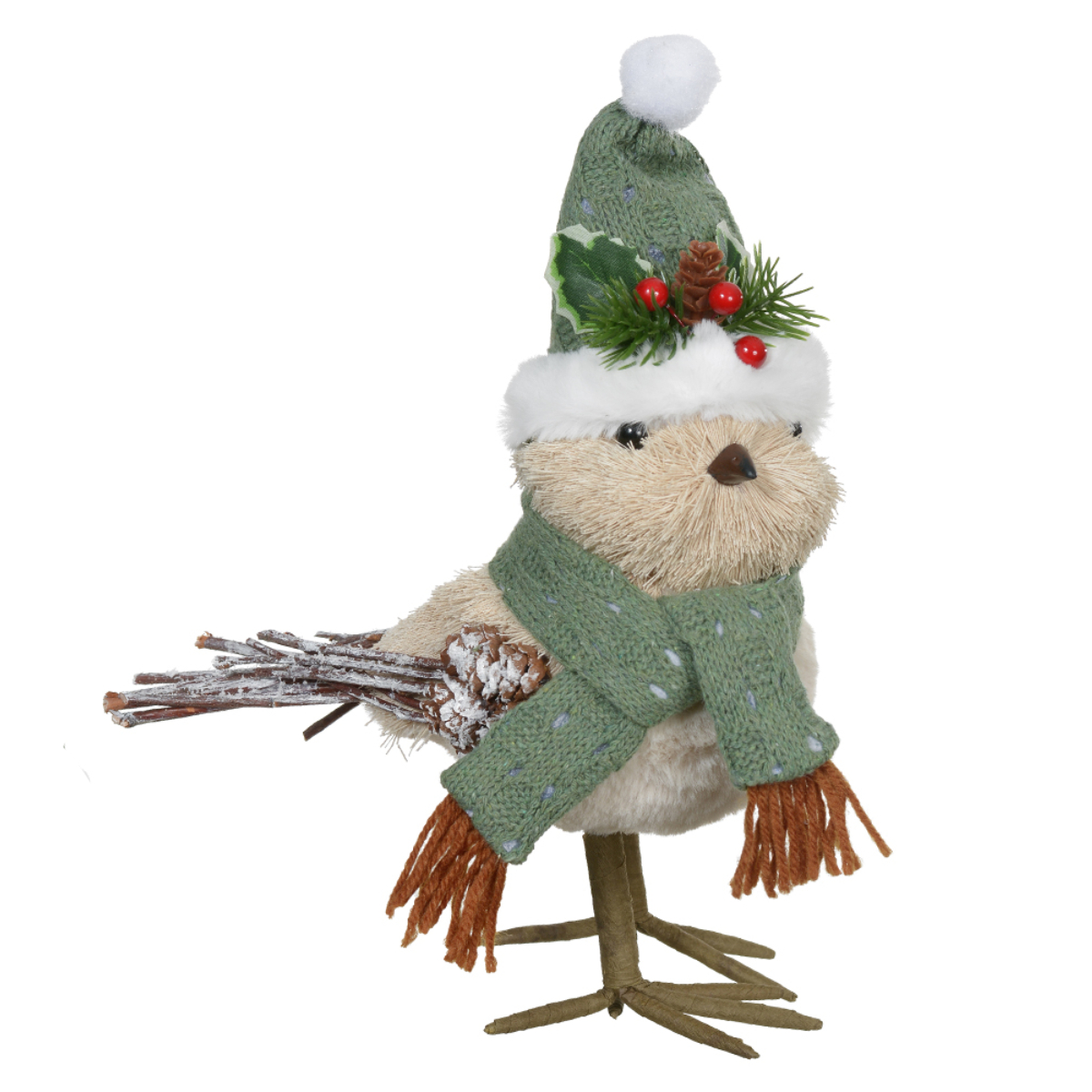 PASSARO NATAL SISAL COM CACHECOL VERDE E BEGE 28X11CM
