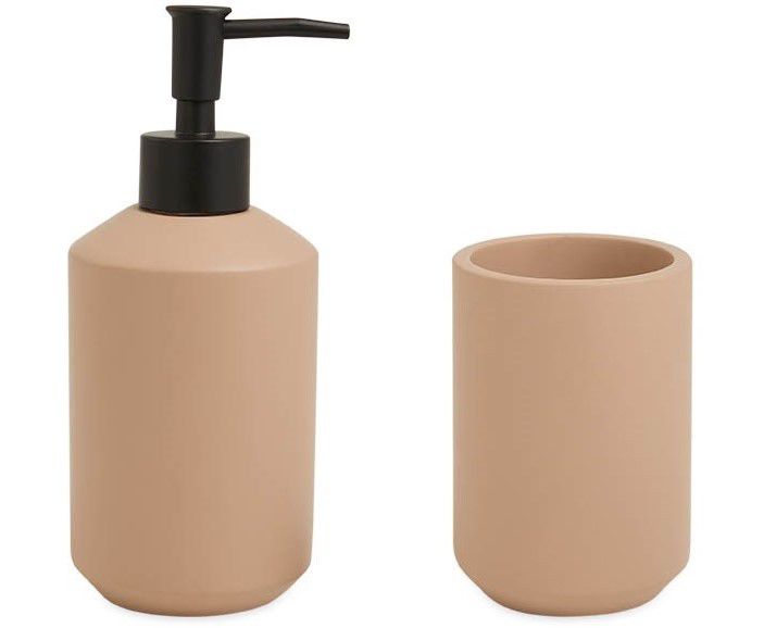KIT BANHEIRO PORTA-SABONETE LIQUIDO E COPO EM CIMENTO ROSA