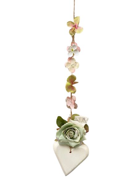 CORDAO CORACAO BRANCO E ROSA DECORATIVO SHABBY CHIC