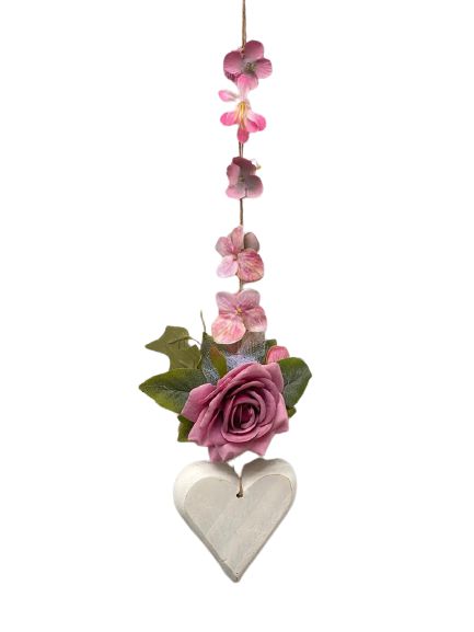 CORDAO FLORIDO COM CORACAO E ROSA DECORATIVO SHABBY CHIC