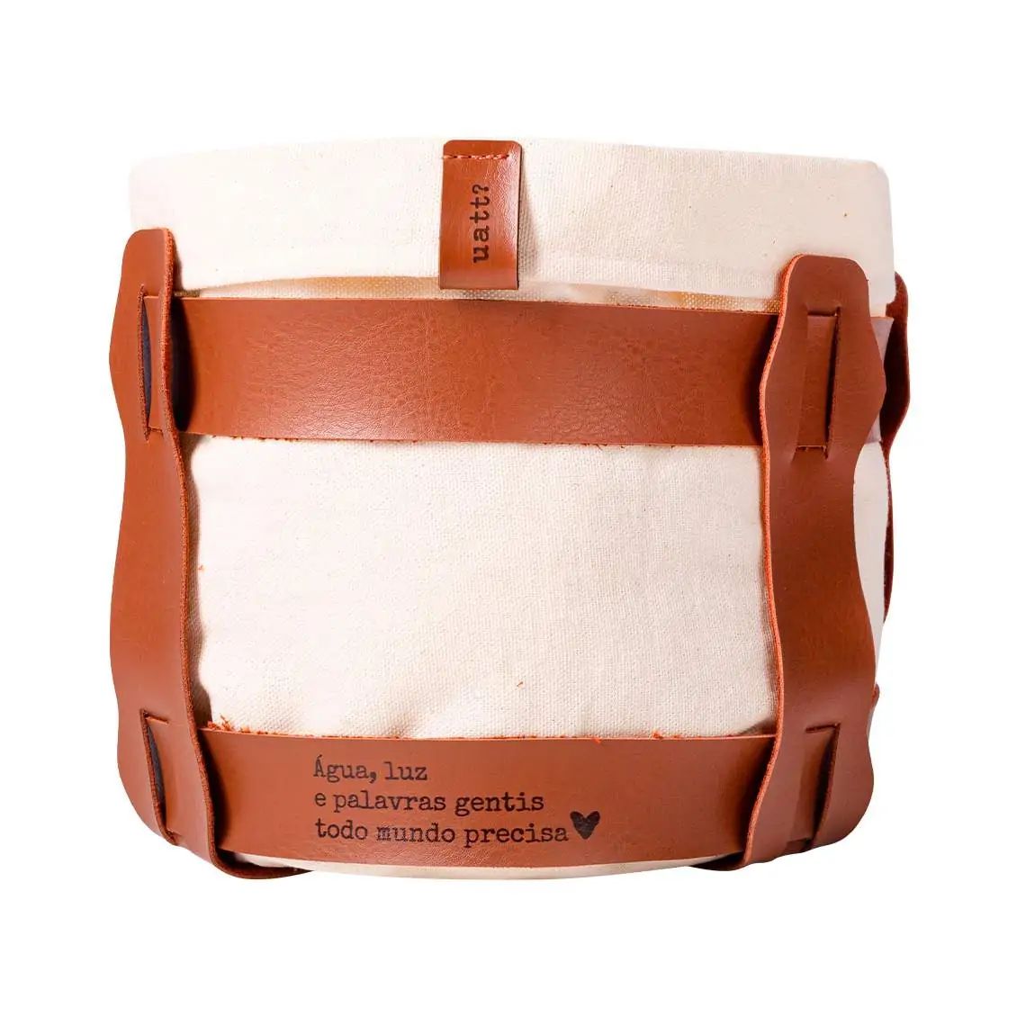 Material: Cachepot: 100% Algodão. Detalhe: 80% Policloreto de vinila, 20% Poliéster. Contém: 1 cachepot de tecido com detalhe. Dimensões: 12,3 x 12,4 x 12cm.