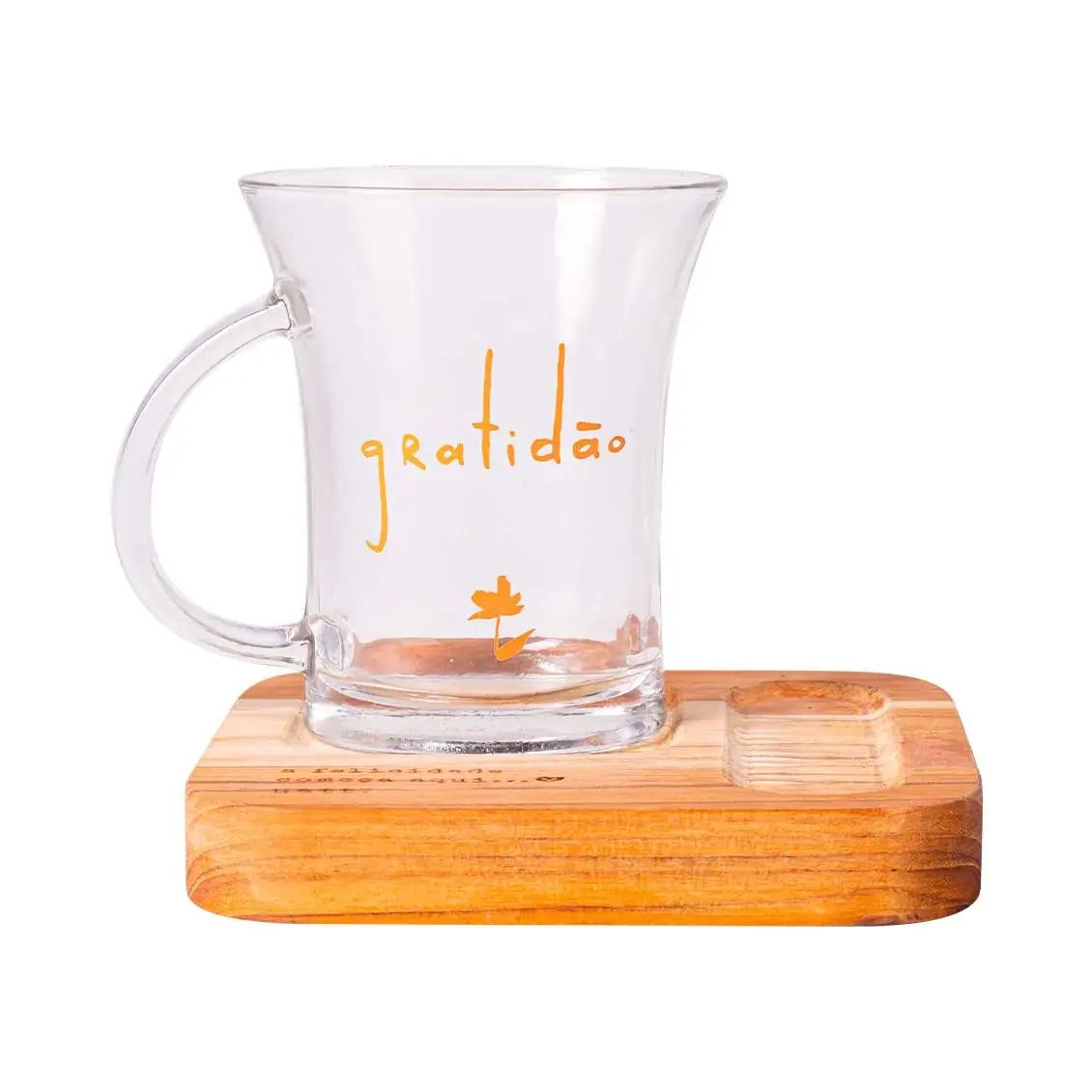 Material: Caneca: Vidro. Tábua: Madeira Teca.
