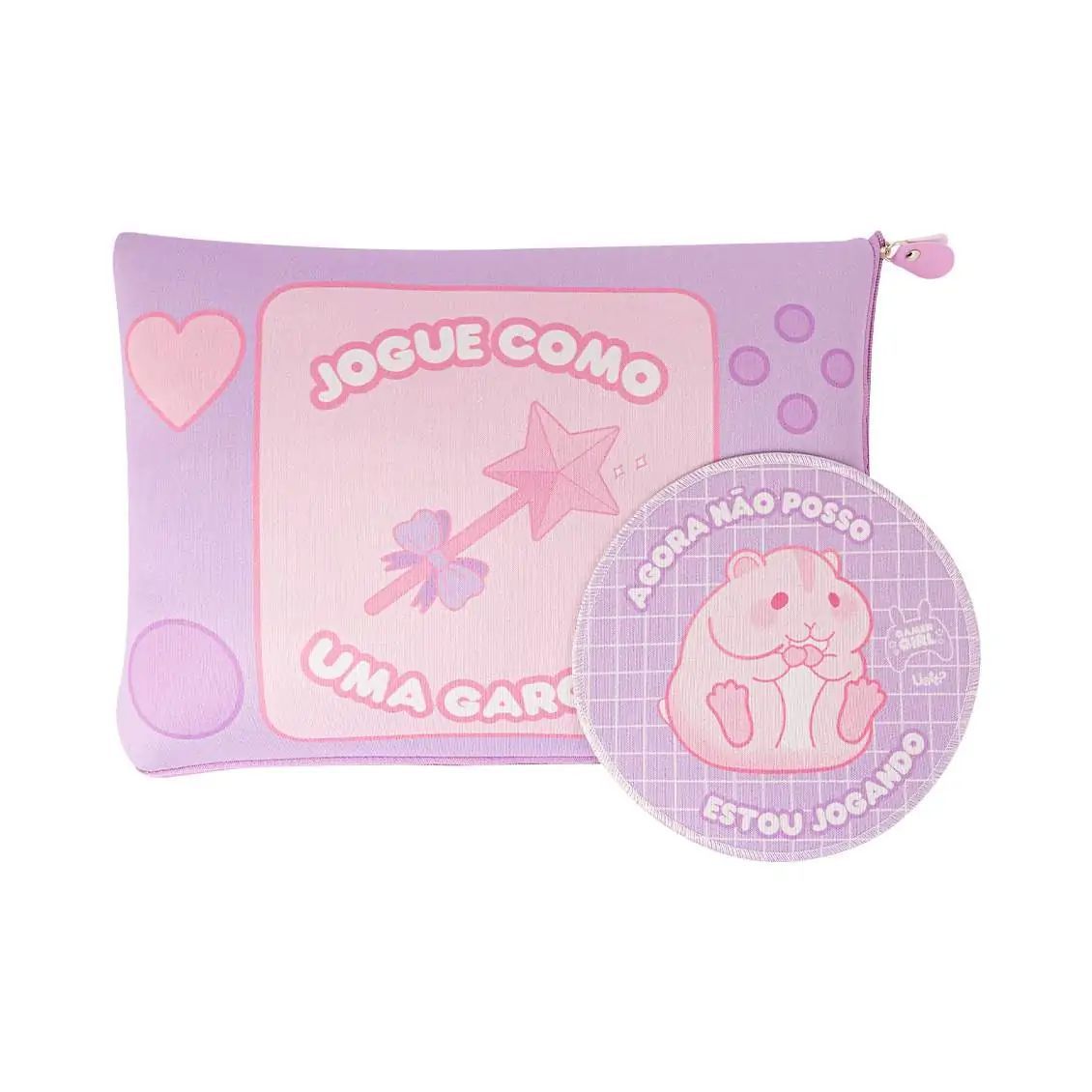 Capa de notebook com mousepad feito em poliéster, ideal para você transportar seu notebook de até 16 polegadas com segurança e estilo.
