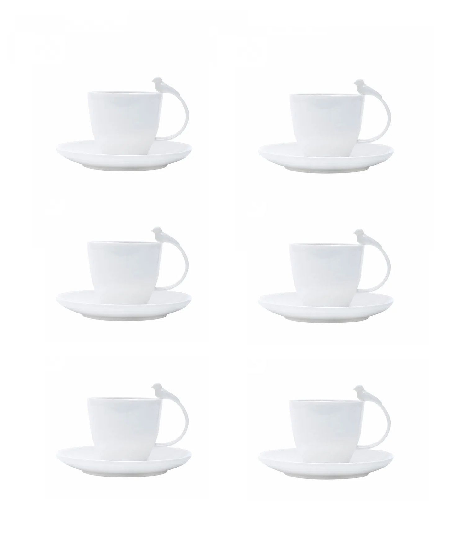 6 Xícaras Porcelana para Chá Birds Branco 11X8X9cm 200ml E 6 Pires 15X2cm