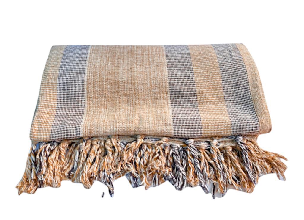 Manta de Algodao Cama Sofa Casal Listrada 2 tons de marrom