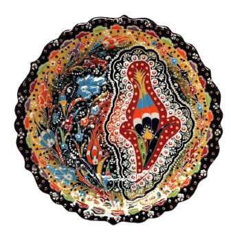 Prato p/ decoração de paredes feito em cerâmica iznik turca com desenho de mandala colorida pintada artesanalmente por artistas da Turquia.