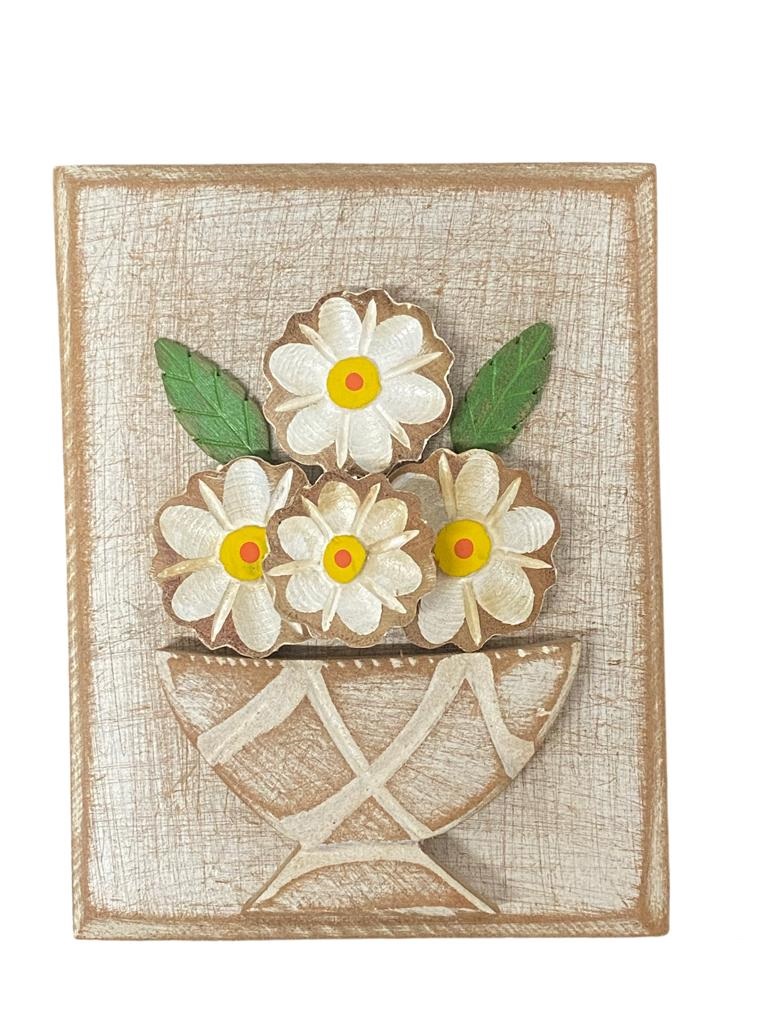 QUADRO EM MADEIRA COM FLORES BRANCAS 20X15CM MOD 01