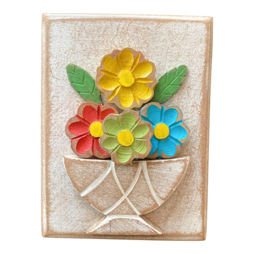 QUADRO EM MADEIRA COM FLORES BRANCAS 20X15CM MOD 03