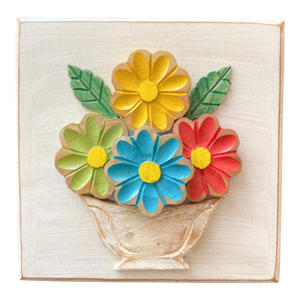 QUADRO EM MADEIRA COM FLORES COLORIDAS MOD 02