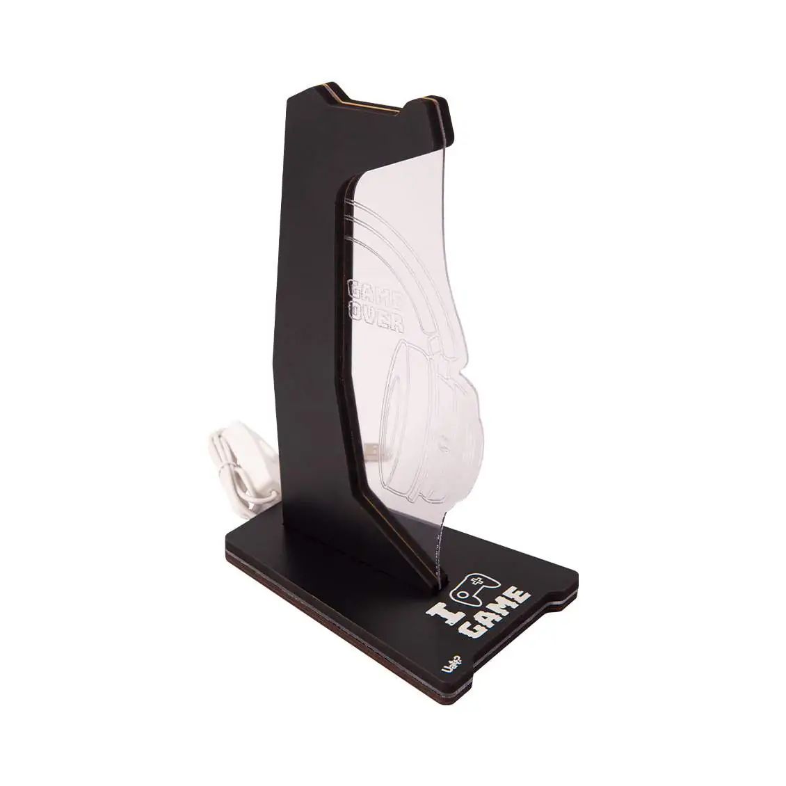 Suporte de Fone Gamer Geek - Quem é gamer sabe, um setup organizado faz toda a diferença. Com o suporte seu fone fica mais protegido e o setup mais organizado, e ele ainda vem com led alimentado por USB e que mudam de cor com o auxílio de um filtro de luz.