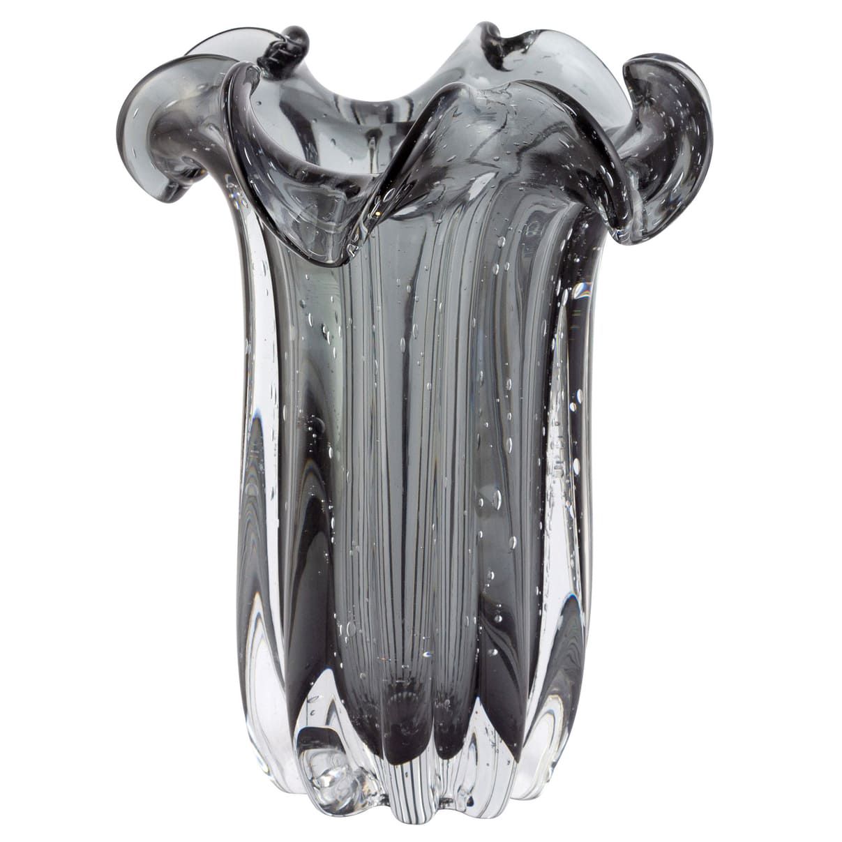 VASO DE VIDRO MURANO CINZA VENEZA 19x24cm