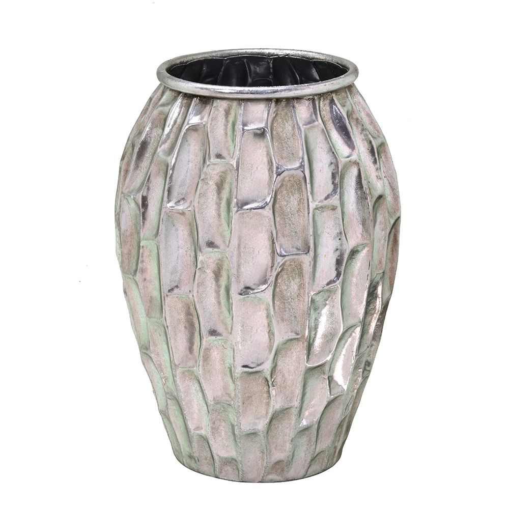 VASO DECORATIVO EM METAL PRATA RUSTICO TRABALHADO