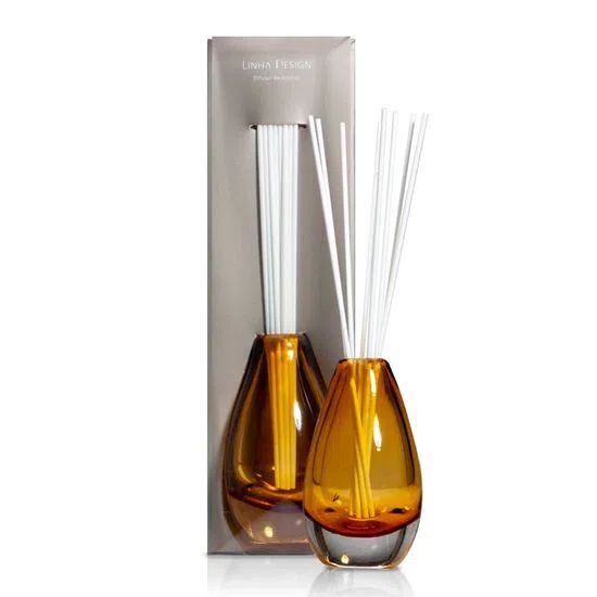 Vaso em vidro translúcido na cor âmbar com capacidade aproximada de 100ml de óleo difusor acompanhado de 08 varetas na cor branca. Desenvolvido para decorar e perfumar ambientes sofisticados e inovadores. Deve ser utilizado com óleo difusor de aromas Acqua Aroma de sua preferência - vendido separadamente. Observação: Produto artesanal que pode sofrer alteração de cor e formato.