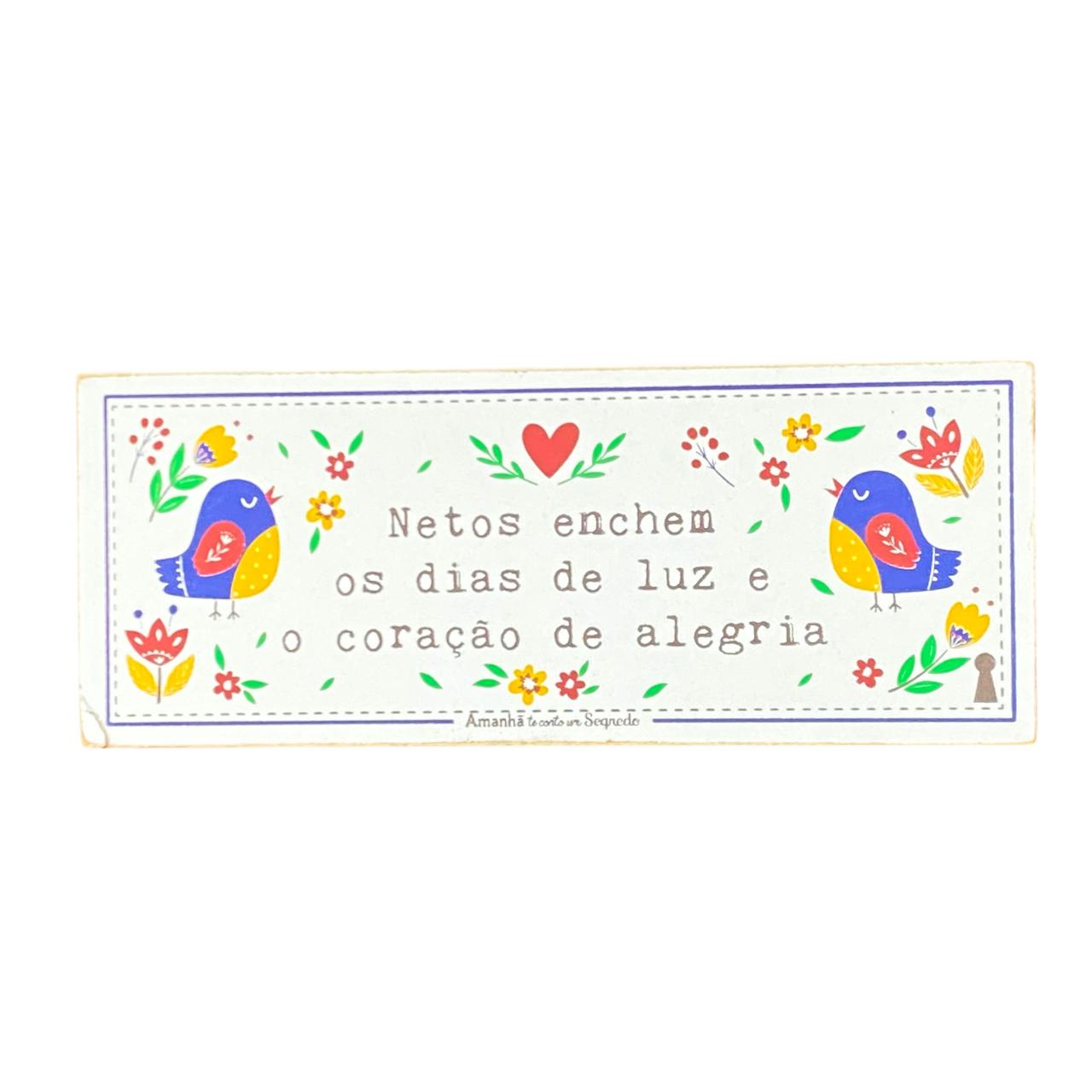 O Quadro Box “Netos Alegria” é uma peça decorativa encantadora que celebra o amor e a felicidade que os netos trazem para a vida. Produzido em MDF de alta qualidade, conta com acabamento resistente e impressão nítida, valorizando cada detalhe da arte e da mensagem afetiva.