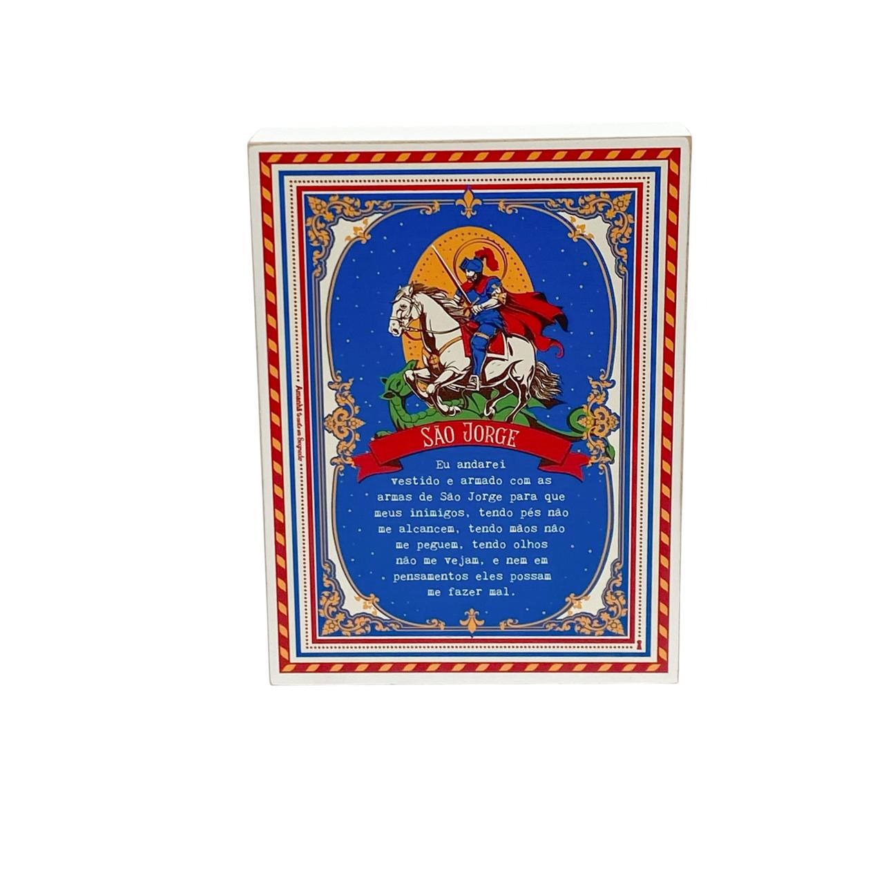 O Quadro Box Sao Jorge é uma peça decorativa que transmite fe protecao e coragem. Com forte significado simbolico ele valoriza a espiritualidade e traz uma presenca marcante e acolhedora para o ambiente.