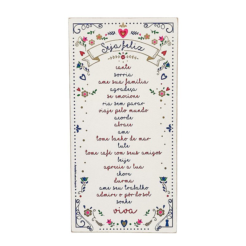 Com a mensagem Seja Feliz em destaque, a peça transmite motivação e estimula boas energias no dia a dia. Sua arte em tom branco combina facilmente com diversos estilos de decoracao, desde o minimalista até o contemporaneo.