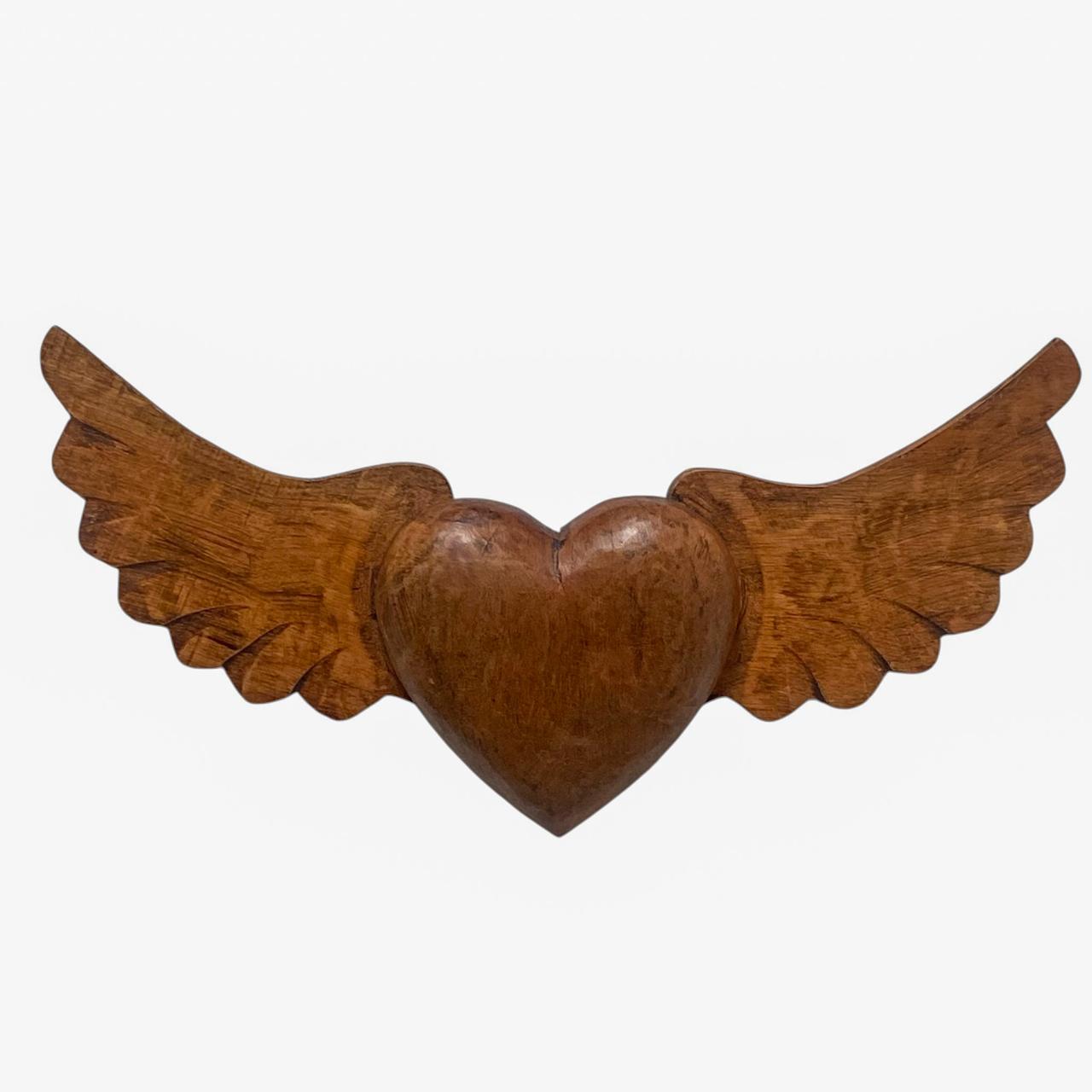 Adicione um toque de romantismo, significado e afeto à sua decoração com este encantador adorno esculpido em madeira. O design clássico do coração alado carrega um belíssimo simbolismo de amor, liberdade e proteção. Trabalhada com cuidado artesanal, a peça destaca os veios naturais e a tonalidade quente da madeira, garantindo que o seu ambiente fique muito mais acolhedor e cheio de personalidade.