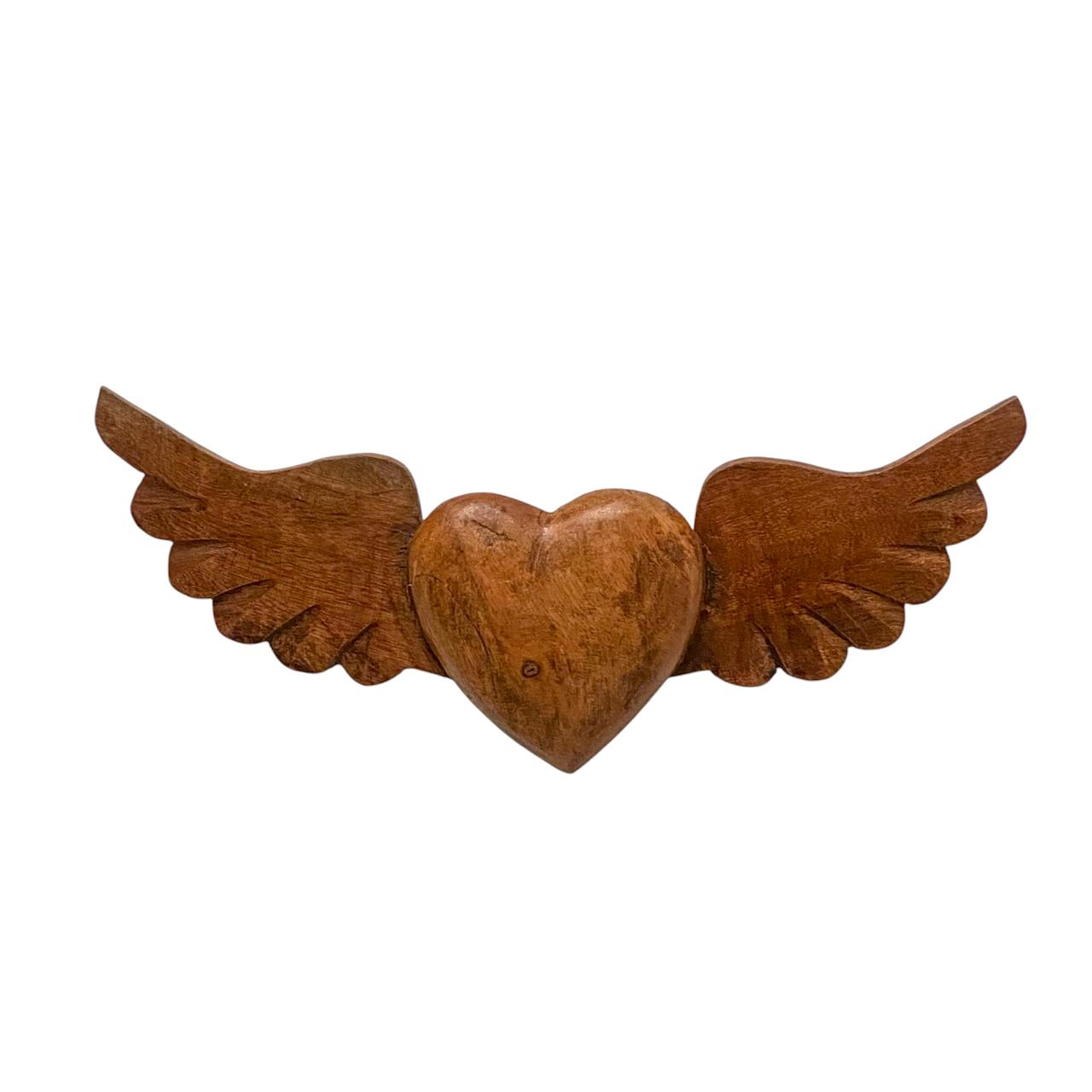 Adicione um toque de romantismo, significado e afeto à sua decoração com este encantador adorno esculpido em madeira. O design clássico do coração alado carrega um belíssimo simbolismo de amor, liberdade e proteção. Trabalhada com cuidado artesanal, a peça destaca os veios naturais e a tonalidade quente da madeira, garantindo que o seu ambiente fique muito mais acolhedor e cheio de personalidade.