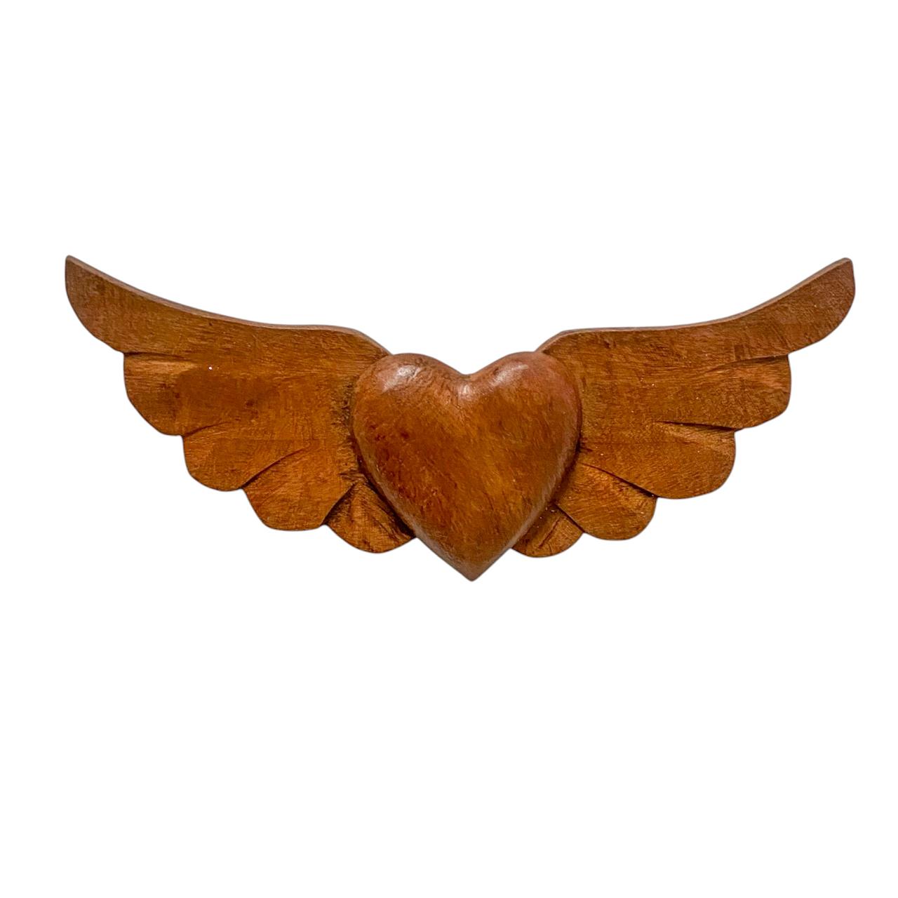Adicione um toque de romantismo, significado e afeto à sua decoração com este encantador adorno esculpido em madeira. O design clássico do coração alado carrega um belíssimo simbolismo de amor, liberdade e proteção. Trabalhada com cuidado artesanal, a peça destaca os veios naturais e a tonalidade quente da madeira, garantindo que o seu ambiente fique muito mais acolhedor e cheio de personalidade.