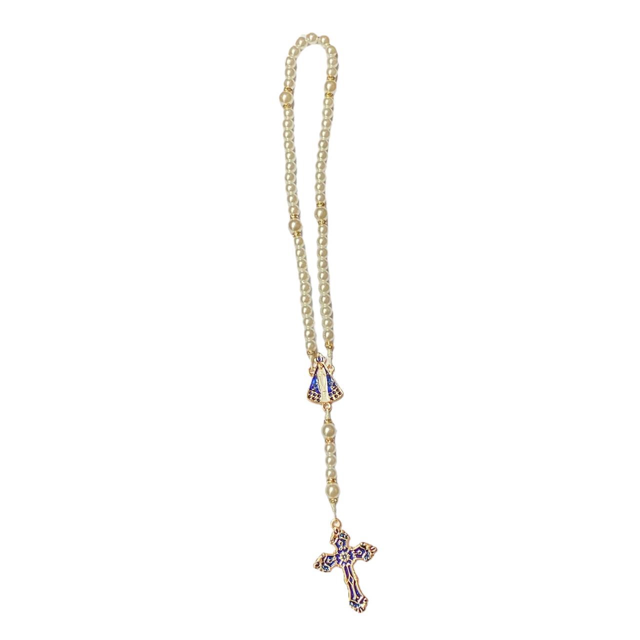 TERCO G APARECIDA COM STRASS E PEROLA CREME 34cm