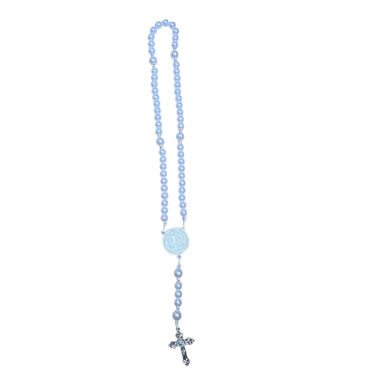 TERCO SAO BENTO GG PRATA DE PEROLA COM STRASS BRANCO 53CM