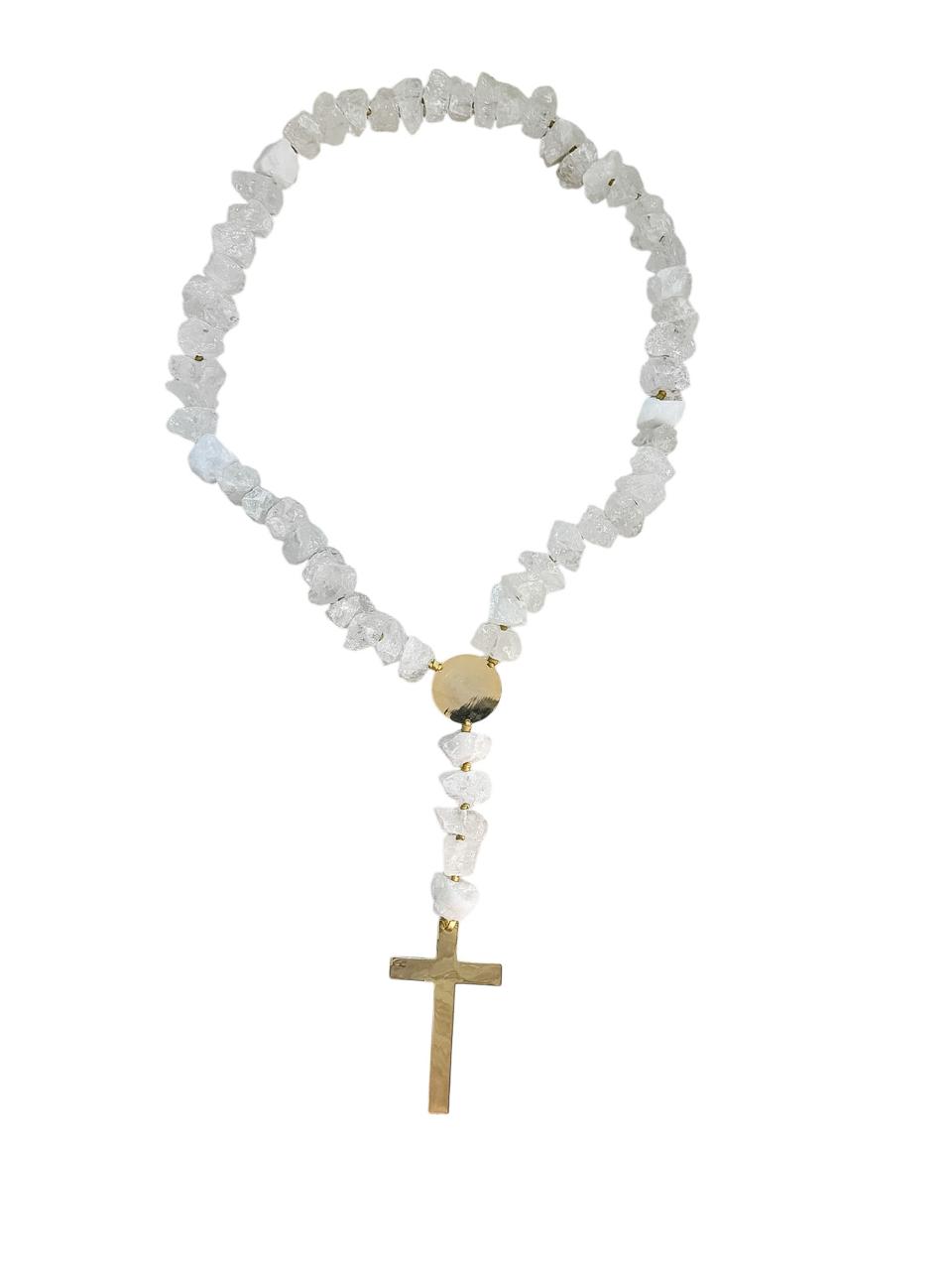 Produzido com pedras naturais — cada conta apresenta textura orgânica e coloração suave, tornando cada peça única. A cruz metálica complementa o design com um toque elegante, equilibrando perfeitamente o rústico e o espiritual.