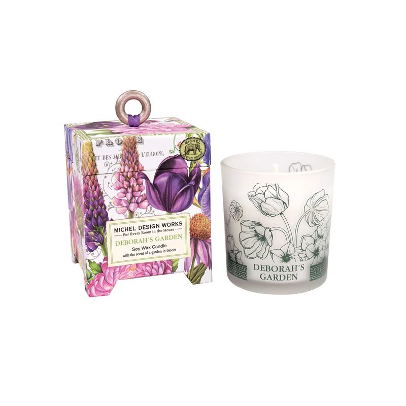 _x000D_Uma homenagem aos jardins deslumbrantes cultivados por Deborah Michel, este design apresenta flores vistosas em uma paleta dramática de rosas e roxos.